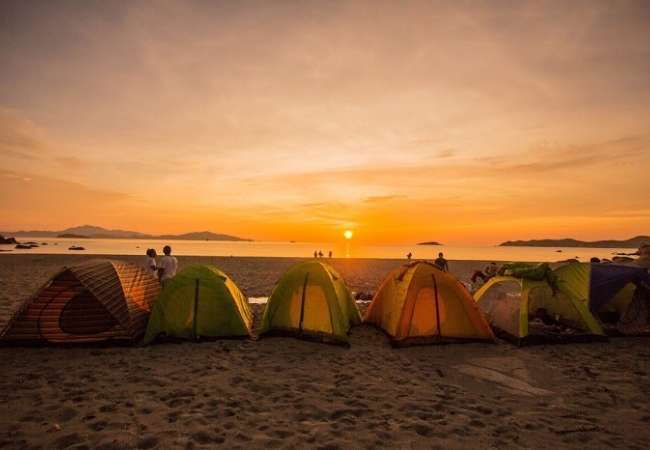 Khoảnh khắc bình minh cũng là điểm nhấn không thể bỏ qua khi cắm trại. Khi ánh sáng dần dần bừng lên trên biển lớn từ phía chân trời xa. Bạn sẽ được thưởng thức khung cảnh tuyệt đẹp và tĩnh lặng của mặt trời ló rạng.