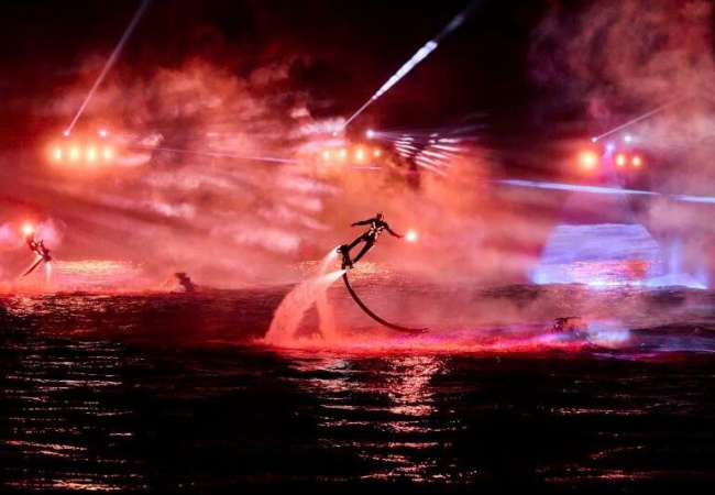 Không chỉ là màn trình diễn thể thao thuần túy, vé show Jetski Cát Bà mang đến một tác phẩm nghệ thuật kể chuyện bằng ngôn ngữ hiện đại. Lấy cảm hứng từ truyền thuyết nàng tiên hạc – biểu tượng văn hóa gắn liền với Cát Bà, show dẫn dắt khán giả qua dòng chảy Ngũ hành.